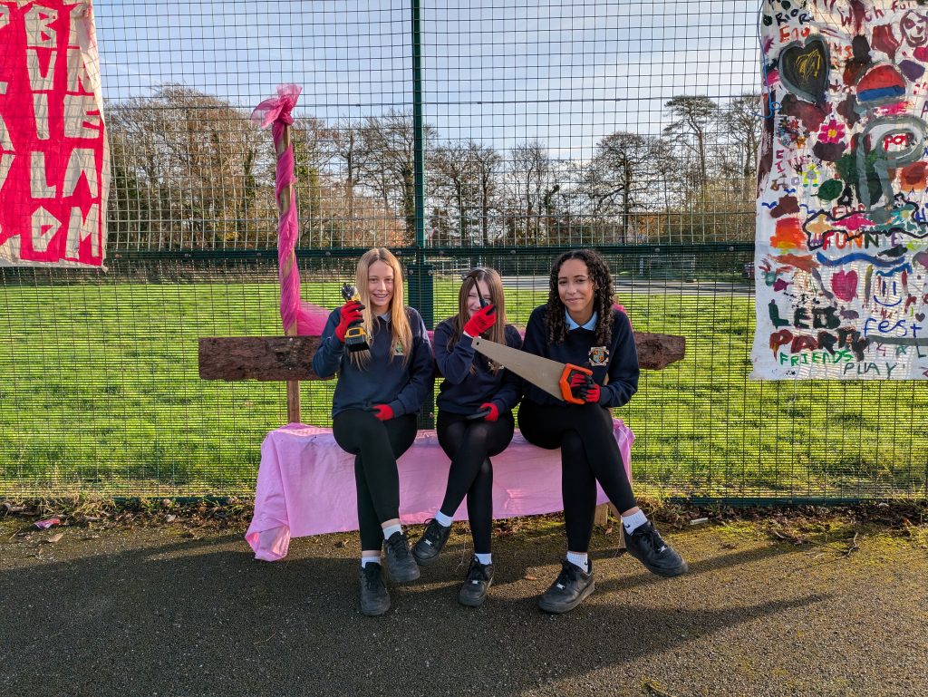 They followed Woodland Tribe’s mantra PLAY BUILD DREAM. Over 100 local children built benches, ladders, towers and swings. We held sessions with local primary schools and an additional needs school, a girls only session and opened up the project to local families after 3pm.
